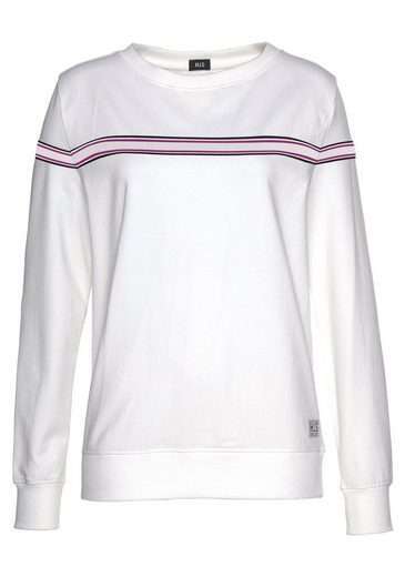 Bei diesem Sweater von H.I.S sorgt ein kontrastfarbener Tapestreifen, der über die Brust und die oberen Ärmel läuft, für einen schönen Blickfang.