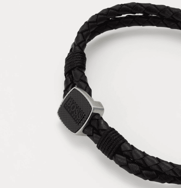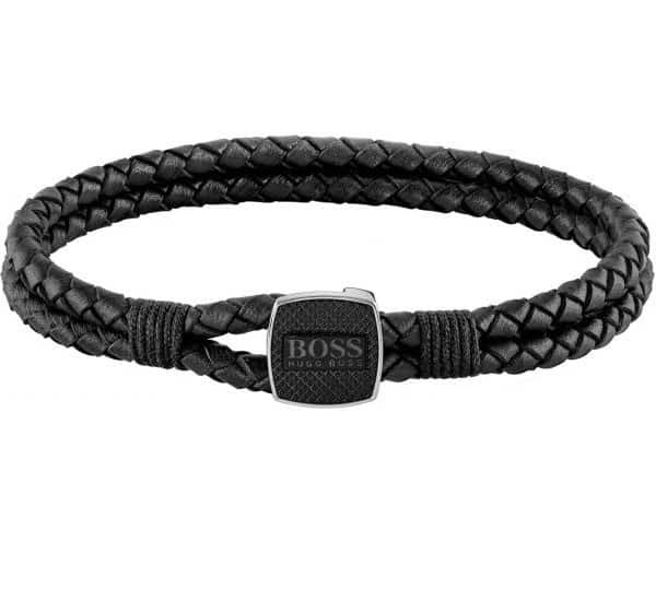 HUGO BOSS Herren Armband in schwarz "Seal", Stahl/Leder