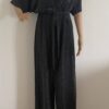 Ein Bindeband tailliert den Jumpsuit und setzt damit die Figur der Trägerin in Szene.