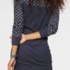 Für feminine Stilnoten sorgen der breite Schlauchkragen, das schöne Muster im Schulterbereich und auf den Ärmeln, sowie die figurbetonte, leicht antaillierte Schnittführung in Minilänge.