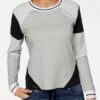 Gestreifte Rippabschlüsse an Ausschnitt und Ärmeln
