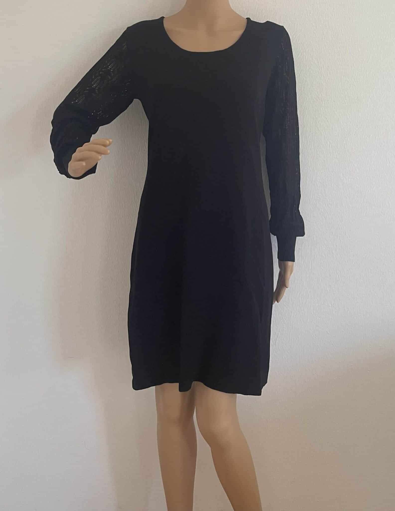 Laura Scott Strickkleid mit Ärmeln aus Ajourstrick, in Schwarz, Gr. 42