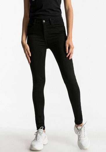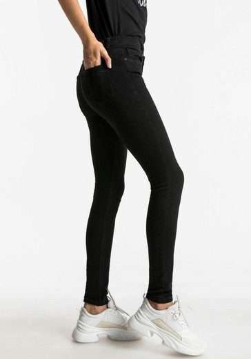 Die extra enge Passform mit modisch hohem Bund bringt deine Beine besonders toll zur Geltung und verleiht der 5-Pocket-Jeans jede Menge Klasse.