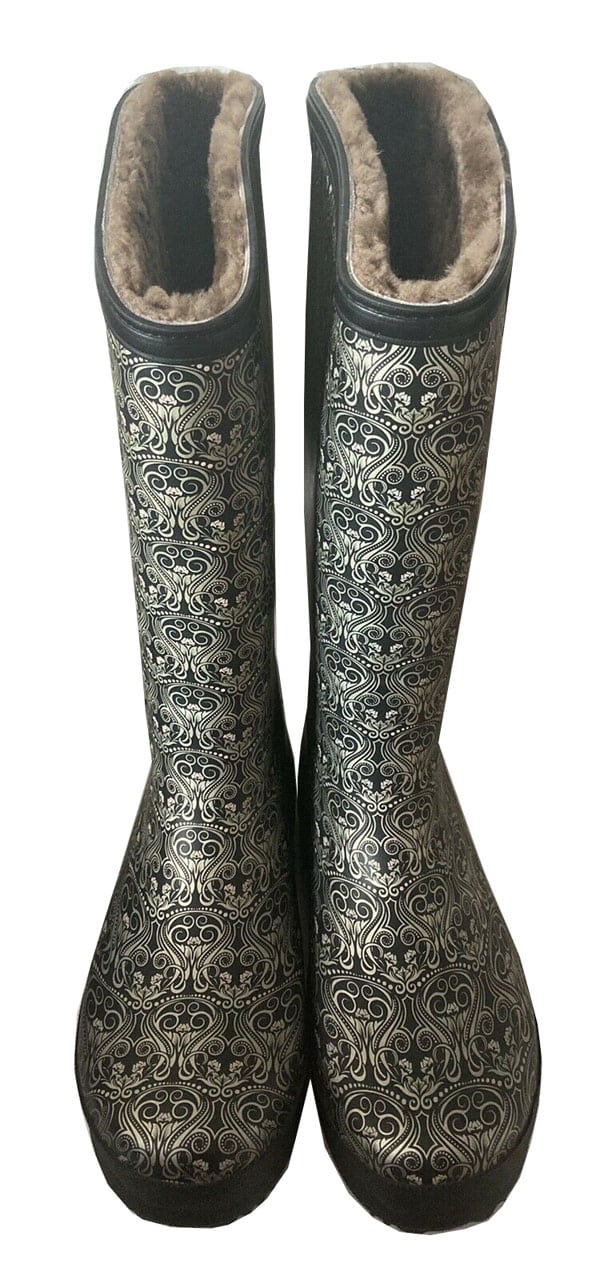 Moov Boots - Wellington Stiefel, kniehoher Schaffellstiefel, Goldmuster, Gr. 41