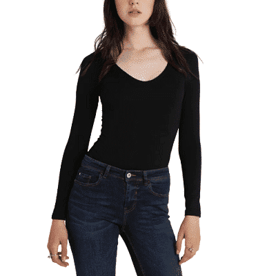 New Look BODY - Langarmshirt mit tiefem V-Ausschnitt in schwarz, Größe 36