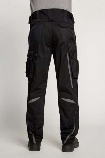Die 3-fache Innenbeinnaht und viele Verriegelungspunkte an Belastungspunkten sorgen für eine höhere Langlebigkeit, der dehnbare Bund auch beim Bücken für einen guten Sitz.