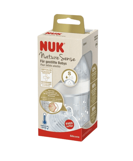NUK Nature Sense Babyflasche. Wir können Mutter Natur nicht ersetzen – aber sie uns als Vorbild nehmen. Wir von NUK haben es uns daher zur Aufgabe gemacht der Natur noch näher zu kommen und auf diese Weise die neue NUK Nature Sense Babyflasche entwickelt. Das Besondere an dieser Flasche: die feinen Trinköffnungen des Trinksaugers wurden den Milchkanälen der Mutterbrust nachempfunden und machen sie zu einem Fläschchen, mit dem Babys ein rundum vertrautes Trinkgefühl und vor allem einen natürlichen Trinkfluss genießen können. Und genau das liegt uns besonders am Herzen, denn mit einem natürlichen Gefühl bei der Flaschenfütterung gelingt der Wechsel vom Stillen an der Brust zur Flaschenfütterung ganz leicht und mit viel Freude für Sie und Ihr Baby. Der Mutterbrust nachempfunden – Der Trinksauger der NUK Nature Sense Babyflasche. Der Trinksauger der NUK Nature Sense Babyflasche ist der Mutterbrust so nah wie nie zuvor! Vor allem für Mütter, die nicht stillen können, Stillen und Flaschenfütterung kombinieren, oder die ihr Baby gerade auf das Trinken aus dem Fläschchen umgewöhnen möchten, eignet sich diese Trinkflasche daher optimal. Die extra breite und flexible Lippenauflage des Trinksaugers lässt Ihr Baby natürlich ansetzen und auch das innovative Anti-Colic Ventil ermöglicht ein brustähnliches Trinken ohne abzusetzen und verhindert so, dass Ihr Baby Luft schluckt. Die extra weiche Saugerspitze passt sich ähnlich der Brustwarze dem Mundraum besonders flexibel an. So fällt Ihrem Kind der Abschied von der Brust sicherlich um einiges leichter und auch für Sie bringt die innovative Trinkflasche von NUK einen echten Mehrwert, denn nun kann nachts auch mal der Papa aufstehen, die Ernährung Ihres Nachwuchses in die Hand nehmen und Ihnen somit ein paar Stunden wertvollen Schlaf schenken. Was die naturnahe Babyflasche noch zu bieten hat. Nicht nur wir halten die NUK Nature Sense Flasche für die beste NUK Trinkflasche, die je entwickelt wurde. Auch Testergebnisse* zeigen vielversprechende Resultate die eindeutig für diese Babyflasche sprechen. So akzeptieren 92% der Babys den naturnahen Trinksauger der Flasche, 99% der Mütter würden diese Flasche weiterempfehlen und 98% der befragten Hebammen und Kinderärzte bestätigen die Weichheit und ein Gefühl fast wie an der Mutterbrust. Doch was wäre dieser perfekte Trinksauger, der von Müttern, Hebammen und Kinderärzten geschätzt und empfohlen wird, ohne das passende Fläschchen dazu? Die Nature Sense Babyflasche ist aus hochwertigen Polypropylen, BPA frei und besonders widerstandsfähig. Durch den extra weiten Flaschenhals gelingt das Befüllen und Reinigen ganz einfach. Die Schutzkappe verschließt direkt und sicher alle feinen Trinköffnungen, sodass die Trinkflasche sich ebenfalls als treuer Begleiter für unterwegs bewährt. Die Kombination zwischen praktischer Babyflasche und naturnahem Trinksauger wurde hier ideal umgesetzt, denn Ihnen und Ihrem Baby soll es an nichts fehlen.
