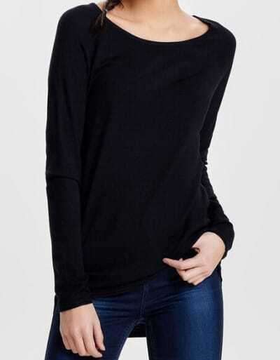 Modische Details wie die Rollkanten an den Abschlüssen, lange Raglanärmel und der gerundete Saum, runden den Look des Damenpullis von Only ab.