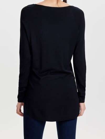 Einen femininen Touch verleihen ihm der weite Rundhalsausschnitt sowie die figurumspielende Schnittführung, während die softe Viskosemischung superangenehm auf der Haut liegt.