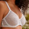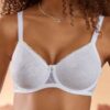 Die leicht transparenten Cups des petite fleur Bügel-BHs sind aus weicher und elastischer Jacquardspitze und mit einem feinen Netzmaterial unterlegt.