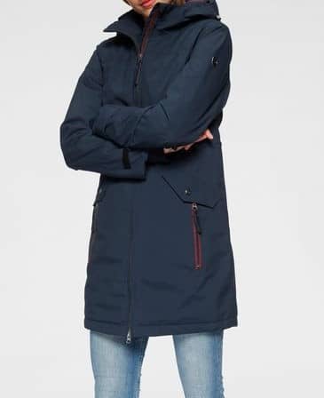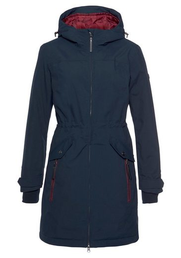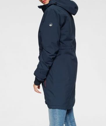 Komfort und Wohlgefühl spendet der bequeme Schnitt des Outdoormantels mit Kordelzug in der Taille.
