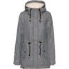 Jacke aus veganer Herstellung, mit wärmendem Teddyfellfutter; geräumige Kapuze; Kragen mit Kinnschutz; hinterlegter und mit Druckknopfleiste verdeckter Frontreißverschluss; Armabschlüsse mit integrierten, elastischen Gamaschen; Taillenzug; warm gefütterte Seitentaschen mit Druckknöpfen; Kunstleder-Details;