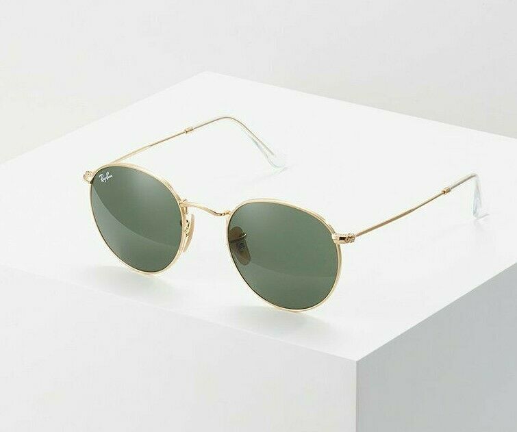 Ray-Ban 0RB3447 ROUND METAL - Sonnenbrille, Unisex, Gold-Grün, Gr. 50mm