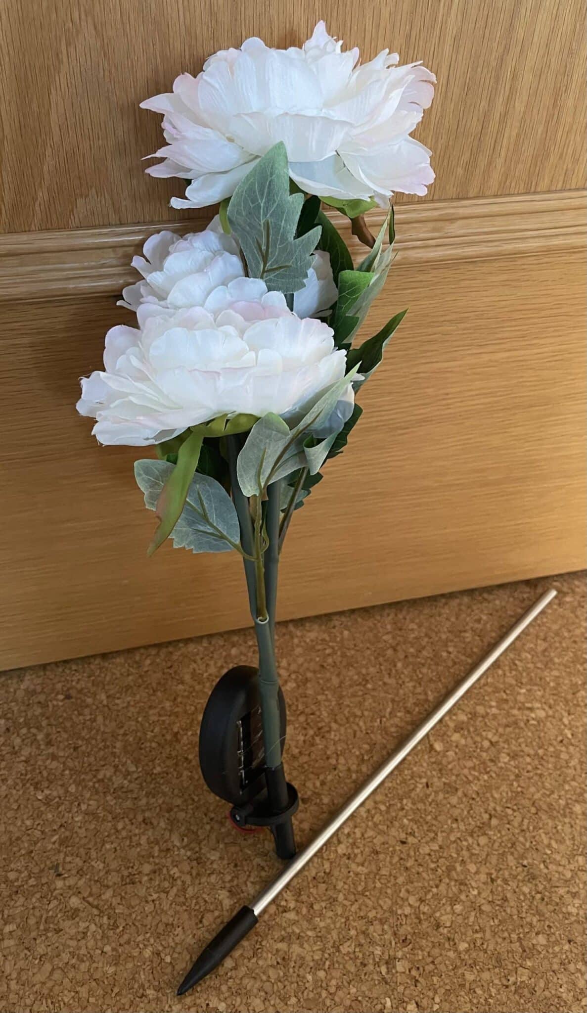 In die Solar Gartenstecker „Pfingstrosen“ wurden in den Blüten jeweils LED-Leuchten eingearbeitet. Diese fangen an zu leuchten, sobald die Sonne am Horizont verschwunden ist. Tagsüber wird die benötigte Energie von dem eingebauten Solarsystem gespeichert, während die weißen Blüten prachtvoll den Garten oder den Balkon zieren.