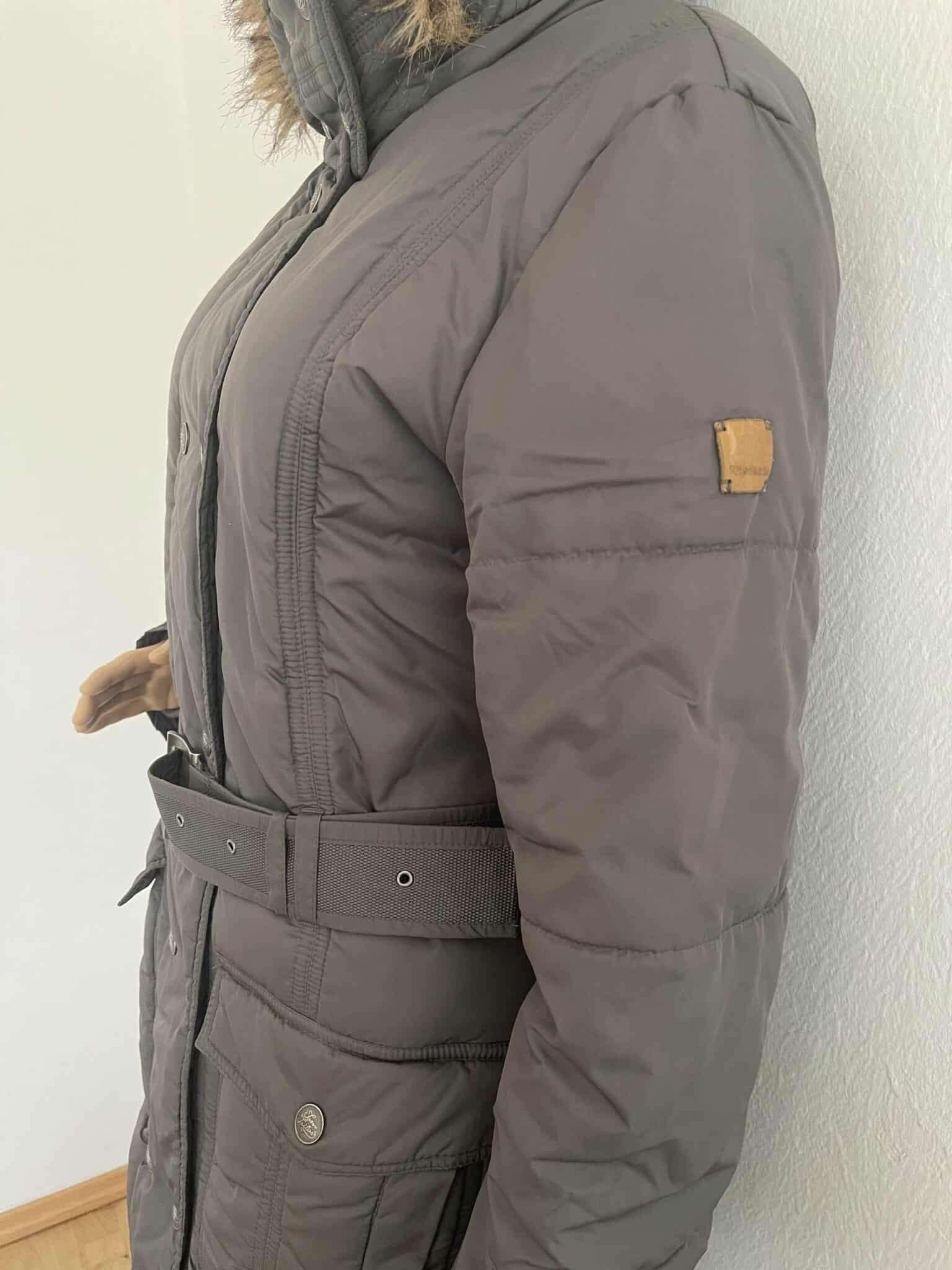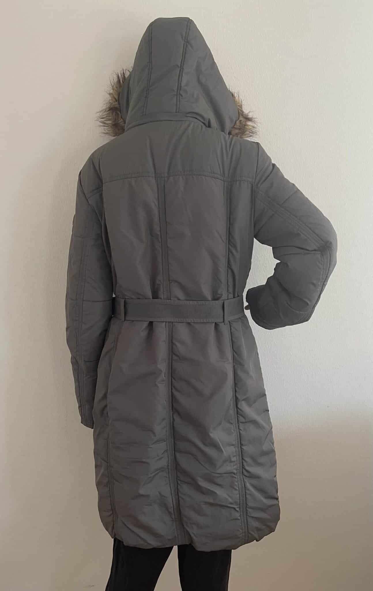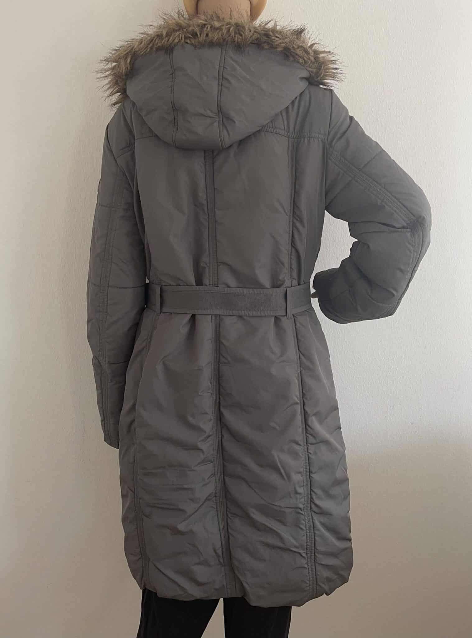 Der abnehmbare Kapuze ist neben dem Gürtel der Eyecatcher an dieser Jacke, die mit ihren großen Taschen besonders praktisch ist.