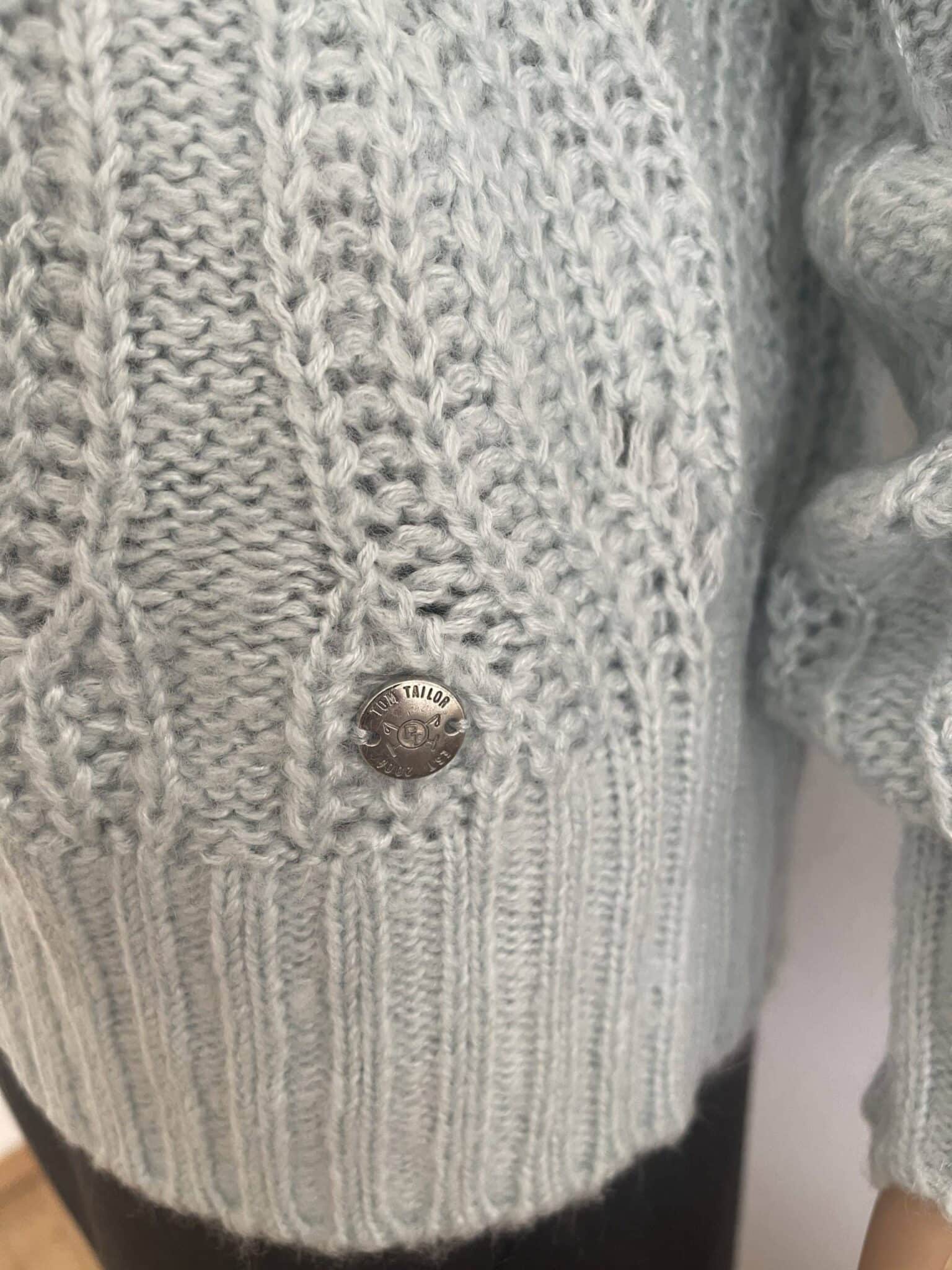 Verstärkt wird die lässige Note noch durch den coolen Strukturstrick und den Rollsaum am Stehkragen.