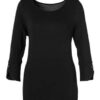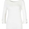 Das Rundhalsshirt von Vivance besticht mit angesetzten Ärmeln in Dreiviertellänge, an deren Ende stilvoll designte Manschetten inklusive eines glänzenden Knopfes stehen.