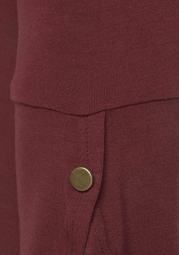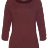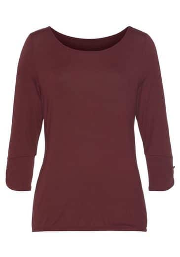 Das Rundhalsshirt von Vivance besticht mit angesetzten Ärmeln in Dreiviertellänge, an deren Ende stilvoll designte Manschetten inklusive eines glänzenden Knopfes stehen.