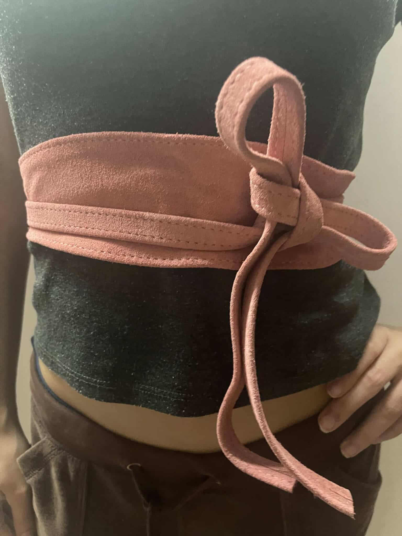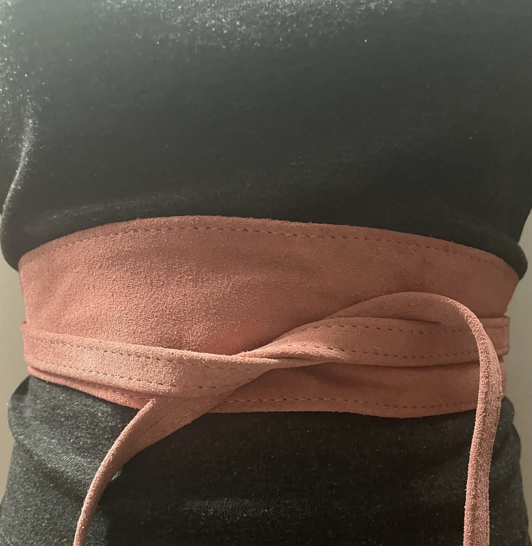 Dieser Wickelgürtel aus natürlichem Wildleder passt hervorragend zu einem langen, losen Hemd, einer Strickjacke oder einem weichen, fallenden Kleid.