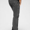 Eine Jeans mit dezenter Waschung und einen angenehmen Sitz. Die wichtigsten Denimfeatures wie der Gürtelschlaufenbund mit Knopf und Reißverschluss, fünf Taschen sowie das Labelpatch hinten am Bund fehlen bei diesen Herrenjeans natürlich auch nicht. Eine kleine Besonderheit bilden die W-förmigen Ziernähte an den Gesäßtaschen der Hose.