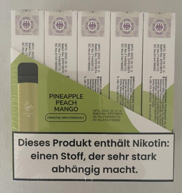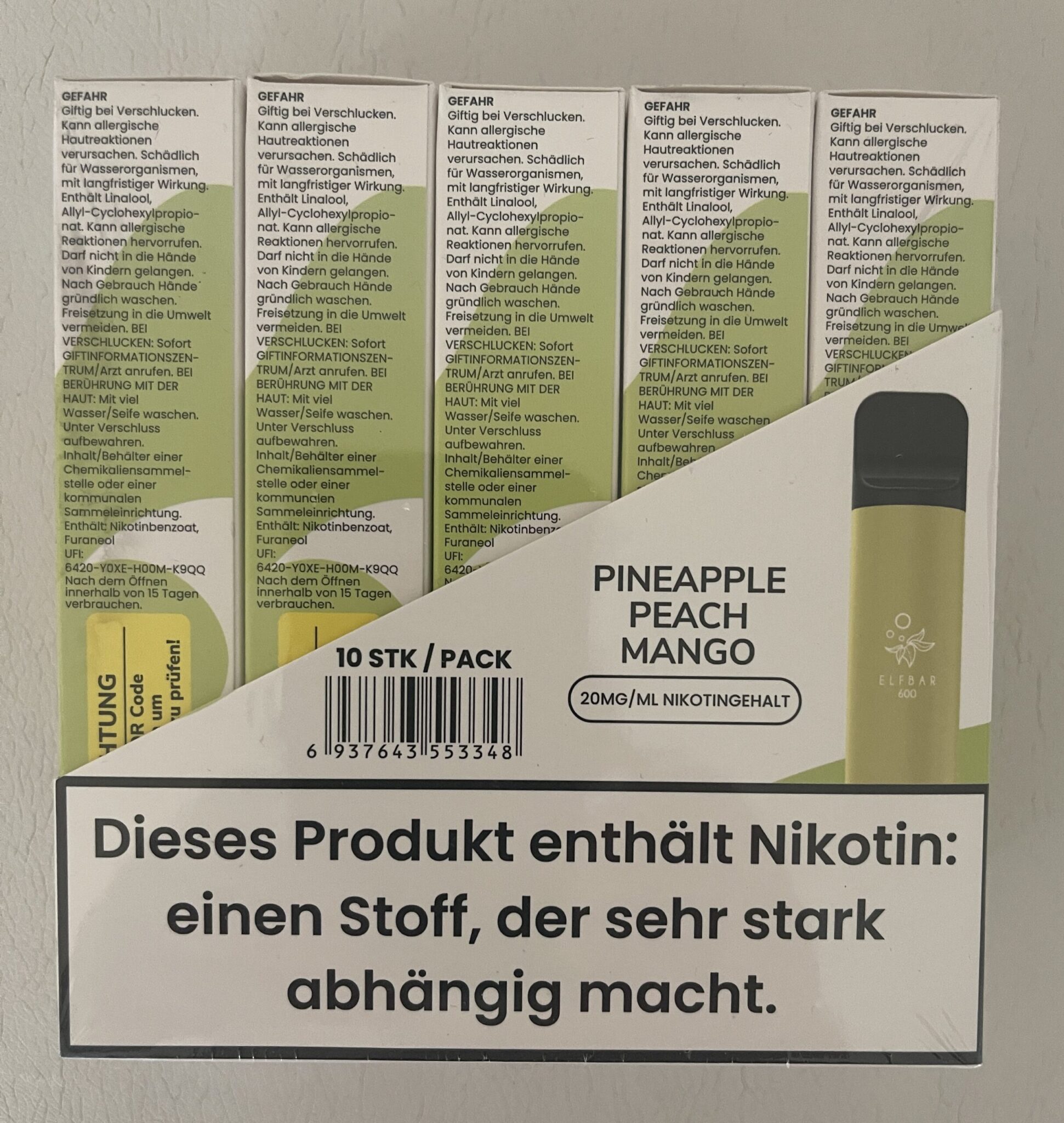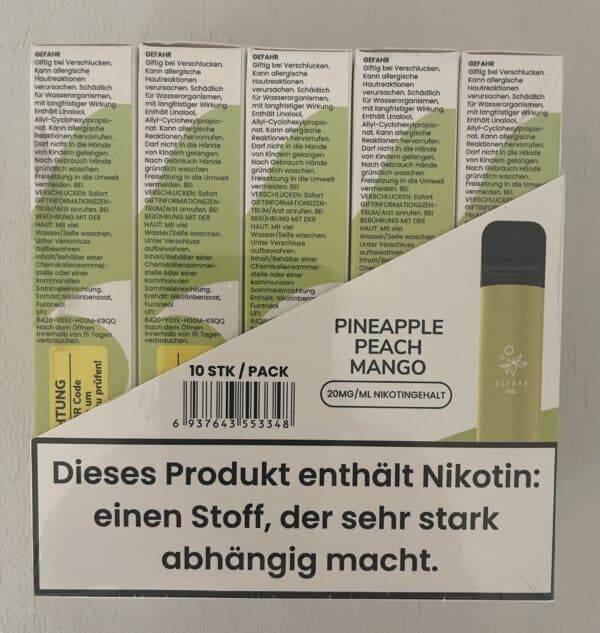 Одноразовая электронная сигарета Elf Bar 600, ананас персик манго, 2 мл, 20 мг/мл