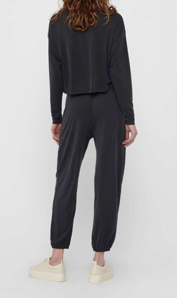 Die locker geschnittene Hose im Harems-Stil mit elastischem Bund fügt sich perfekt an das kurz geschnittene Oberteil, das mit seinem Rundhalsausschnitt und den überschrittenen Schultern ebenfalls luftig und locker jede Ihrer Bewegungen mitmacht.