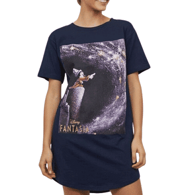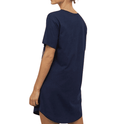 Короткая ночная рубашка прямого покроя из мягкого трикотажа с чуть более широким вырезом и мотивным принтом спереди.