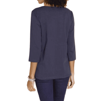 Женская рубашка с декоративным принтом в виде заплатки, рукава 3/4, цвет темно-синий, размер 44