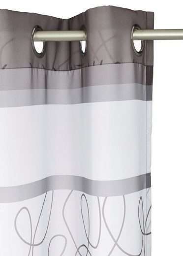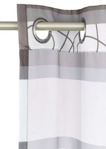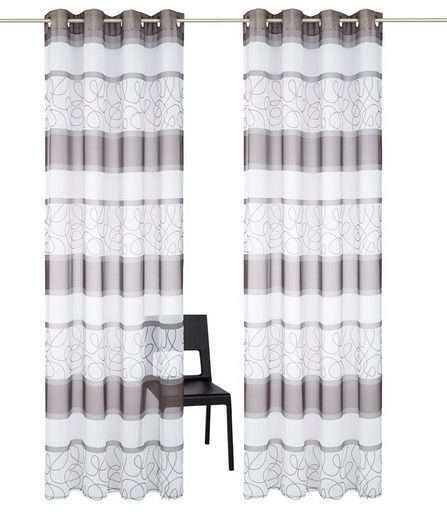 Современная штора Napala в комплекте из 2 штук от бренда my home заслуживает внимания и является трендовой благодаря модному принту в полоску с дополнительными графическими узорами.