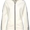 Kontrastfarbene Streifen entlang der Schultern und der Raglanärmel sowie ein Markenlogo und der Reißverschluss in Kontrastfarbe machen das Design perfekt.