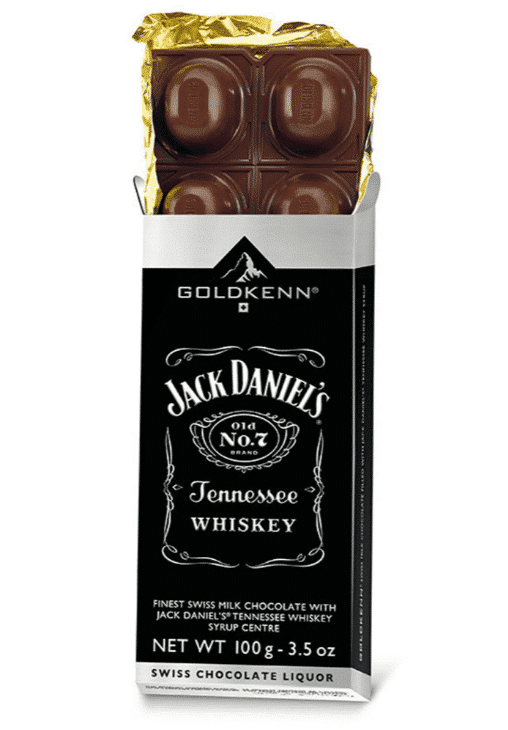 Alkohol und Schokolade – ein absolutes Dream-Team. Wenn aber feinste Schweizer Milchschokolade von Goldkenn mit Original Jack Daniel’s Tennesse Whiskey kombiniert wird, gibt es kein Halten mehr. Die 100 g Tafel bietet einen langanhaltenden Genuss, von dem man gar nicht genug bekommen kann. Die Hülle bildet knackig-zarte Milchschokolade, die mit einer flüssigen Jack Daniel’s-Creme gefüllt ist.