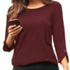 Эта рубашка с круглым вырезом от Vivance имеет втачные рукава длиной три четверти со стильно оформленными манжетами и блестящей пуговицей на конце.