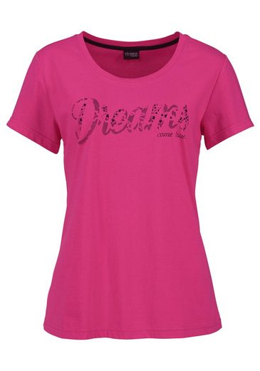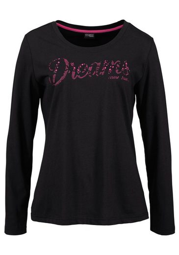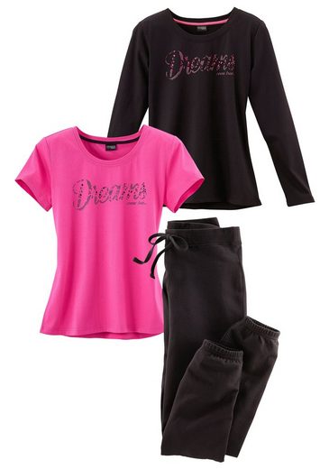 Das 3er-Pyjama-Set von Vivance Dreams beinhaltet ein langes Shirt mit klassischem Rundhalsausschnitt und schönem Frontprint und ein Kurzarmshirt in Kontrastfarbe, das ebenfalls mit Rundhalsausschnitt und Frontprint ausgestattet ist.