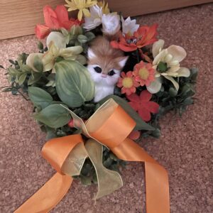 Blumengesteck mit Kätzchen, in Orange, Gelb, Gr. 18 x 18 cm